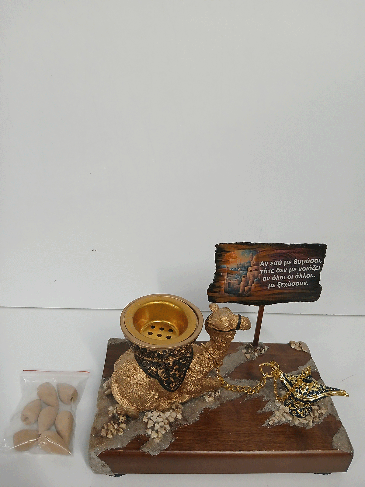 | ΚΩΔΙΚΟΣ :DIAK.SP.KHR0014 ΤΙΤΛΟΣ:Αν Εσύ Με Θυμάσαι… – Ξύλινη Επιγραφή με Καμήλα και Λυχνάρι |