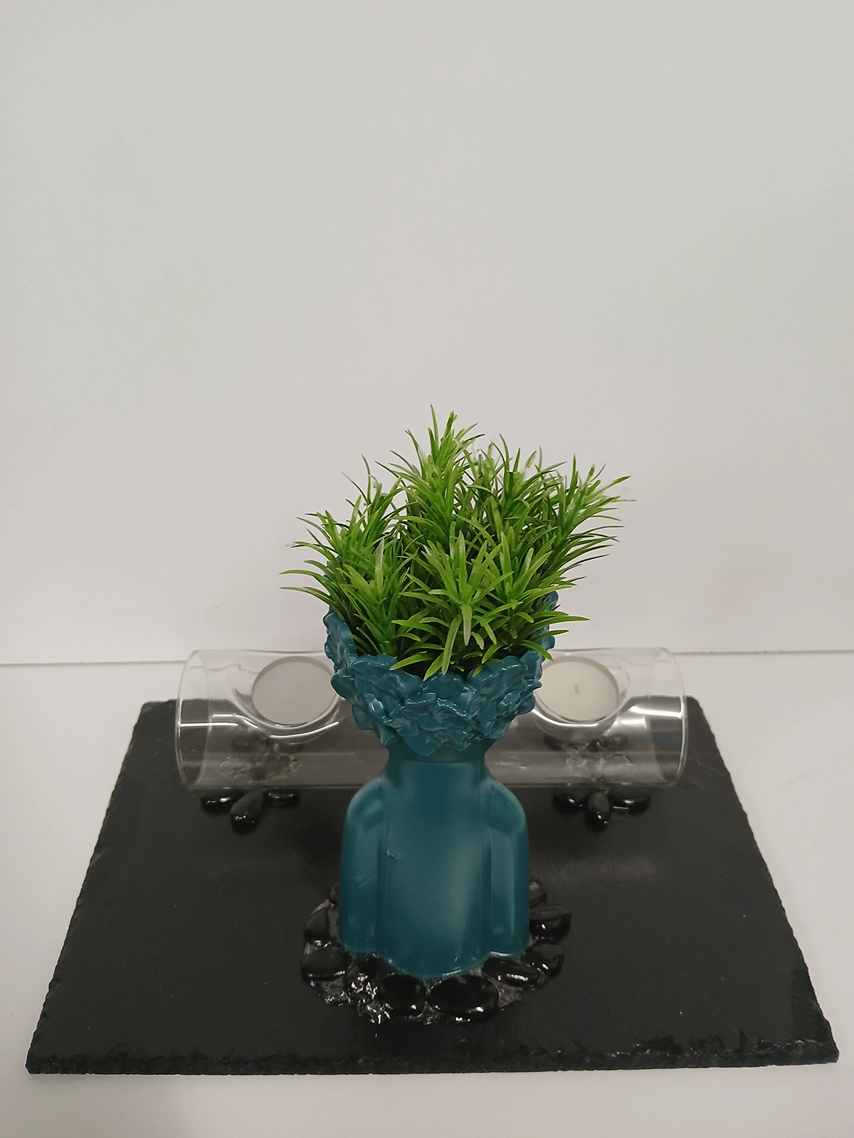 Ανακαλύψτε το Mini Green, ένα μικρό κηροπήγιο με διακοσμητικό φυτό που φέρνει ζεστασιά και ζωή στον χώρο σας. Η χαριτωμένη κατασκευή του αγκαλιάζει τα κεράκια, δημιουργώντας μια ατμόσφαιρα φωτός και ηρεμίας. Το Mini Green συναντά το φως, προσθέτοντας στυλ στο τραπέζι ή το ράφι σας.