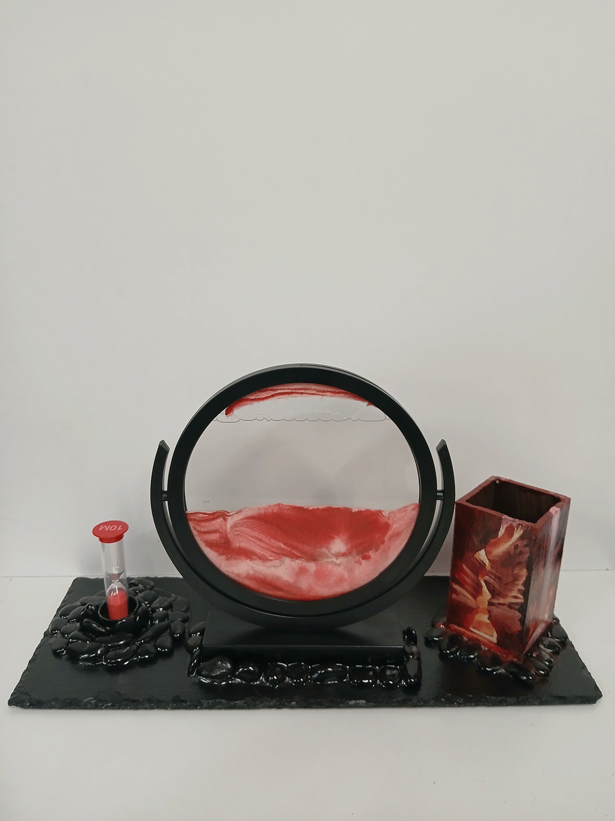 Η κινούμενη άμμος κυλά σαν χρόνος που δεν σταματά ποτέ· κάθε κόκκος αφηγείται μια ιστορία δημιουργίας και αναγέννησης. Η λάβα συναντά την ηρεμία της άμμου, η έκρηξη ισορροπεί με την γαλήνη, θυμίζοντας πως η φύση κρύβει μέσα της τόσο δύναμη όσο και αρμονία.
